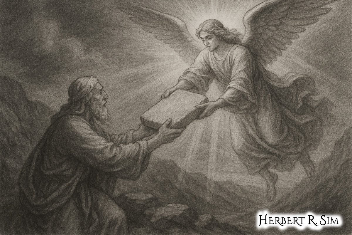 Above is my illustration of the ‘Book of Jubilees’, where the angel passes the heavenly tablets to Moses.