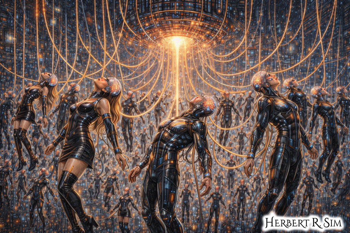In my illustration above, I showcase humans hooked up to the artificial intelligence mainframe aka SkyNet.