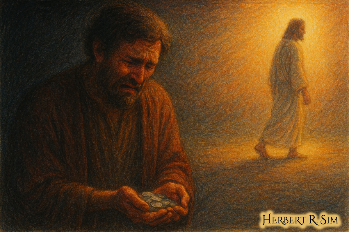 In my illustration above, featuring “Judas in Shadow, Jesus in Light”.