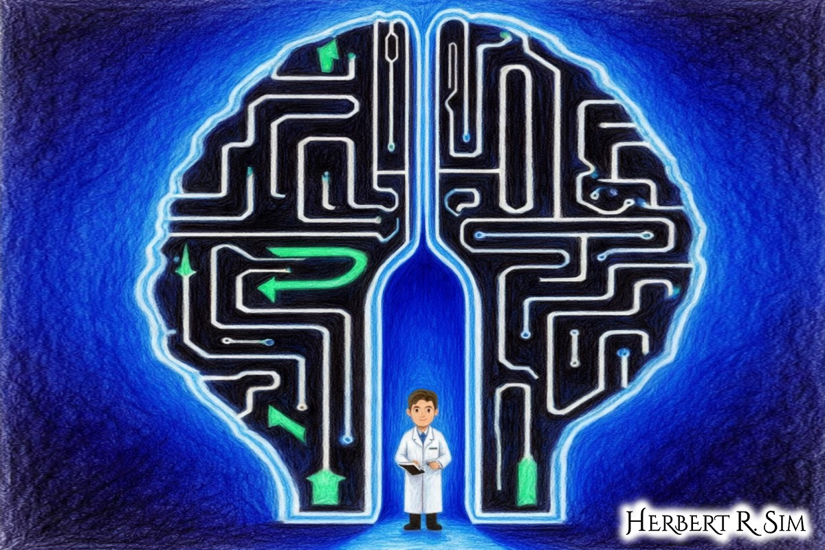 Above is my illustration featuring the ‘Superalignment Labyrinth’ — a maze of circuits shaped like a human brain, with researcher – Leopold Aschenbrenner, standing at the entrance. Pathways glow, some leading to a safe exit, others vanishing into black voids.