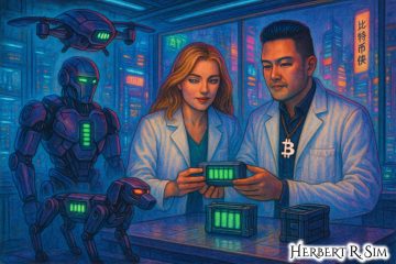 In my illustration above, featuring a high-tech laboratory scene showing engineers examining next-gen battery modules next to military robot prototypes.